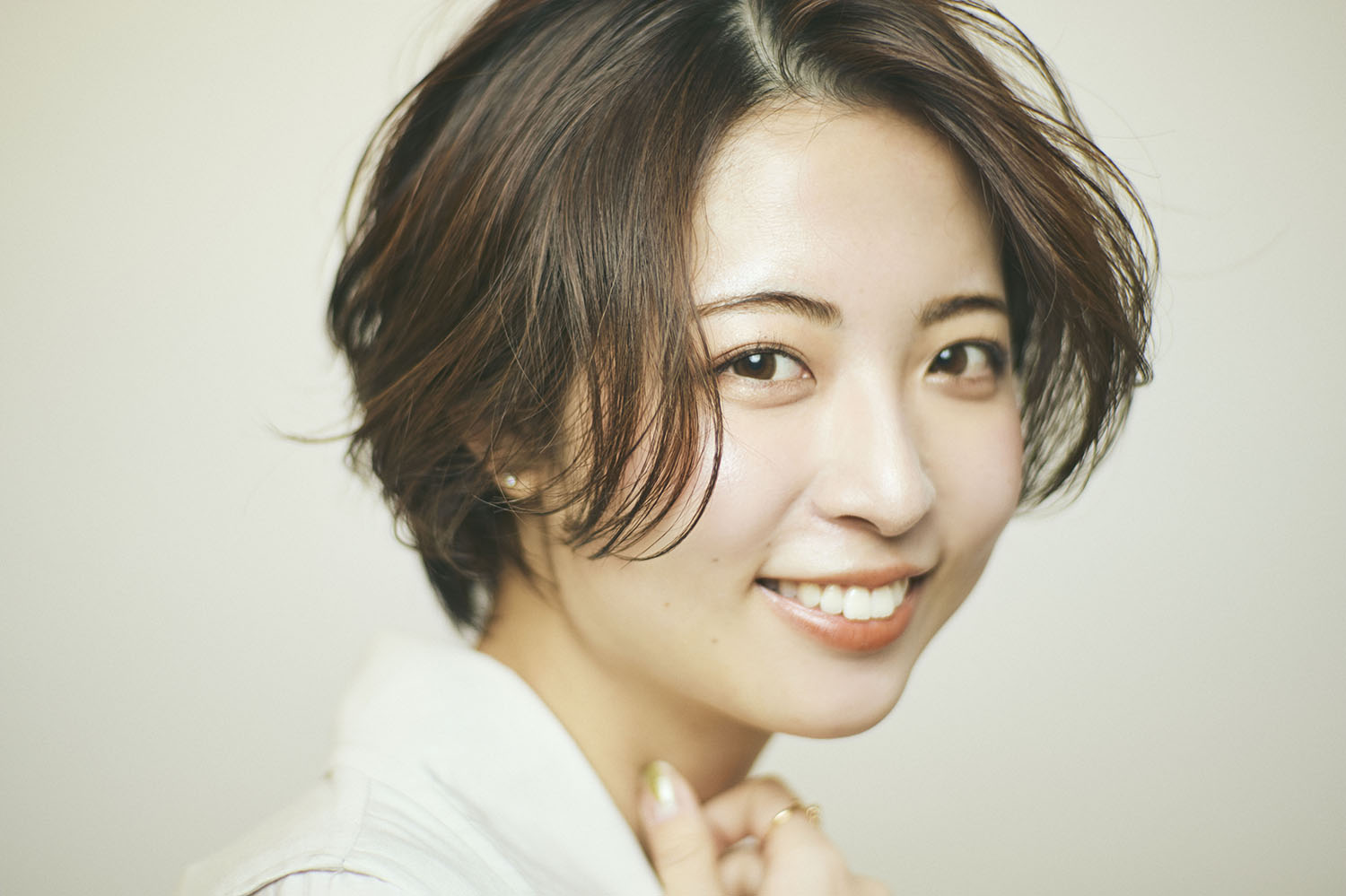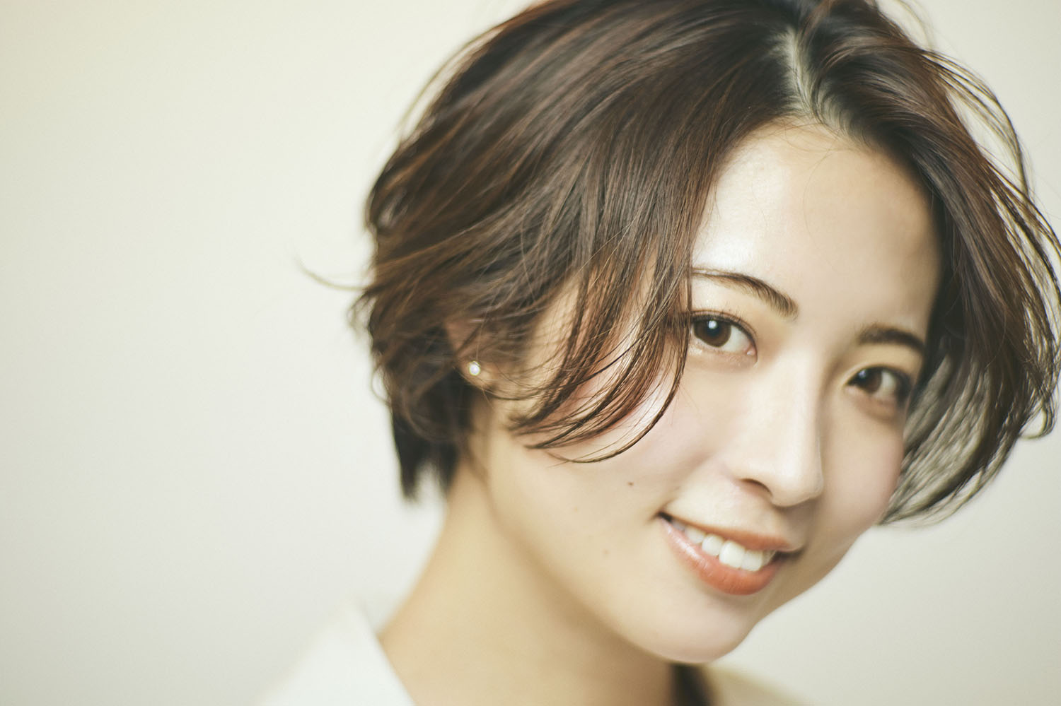 パーマの遊びを加えたハンサムショート。