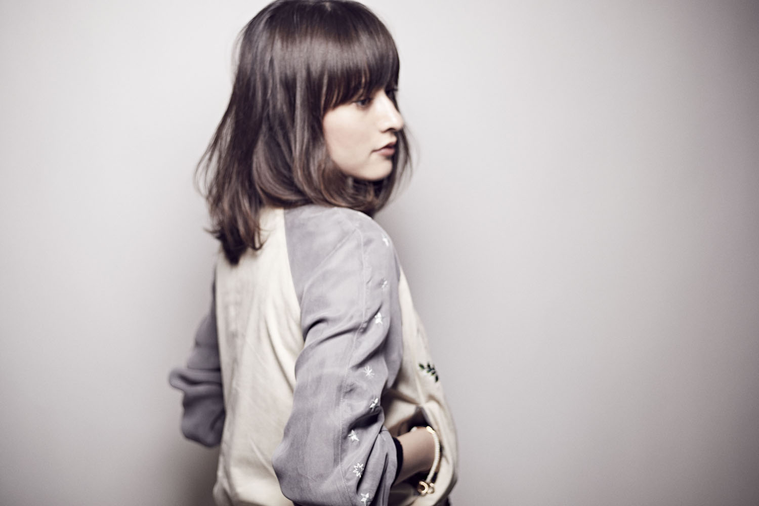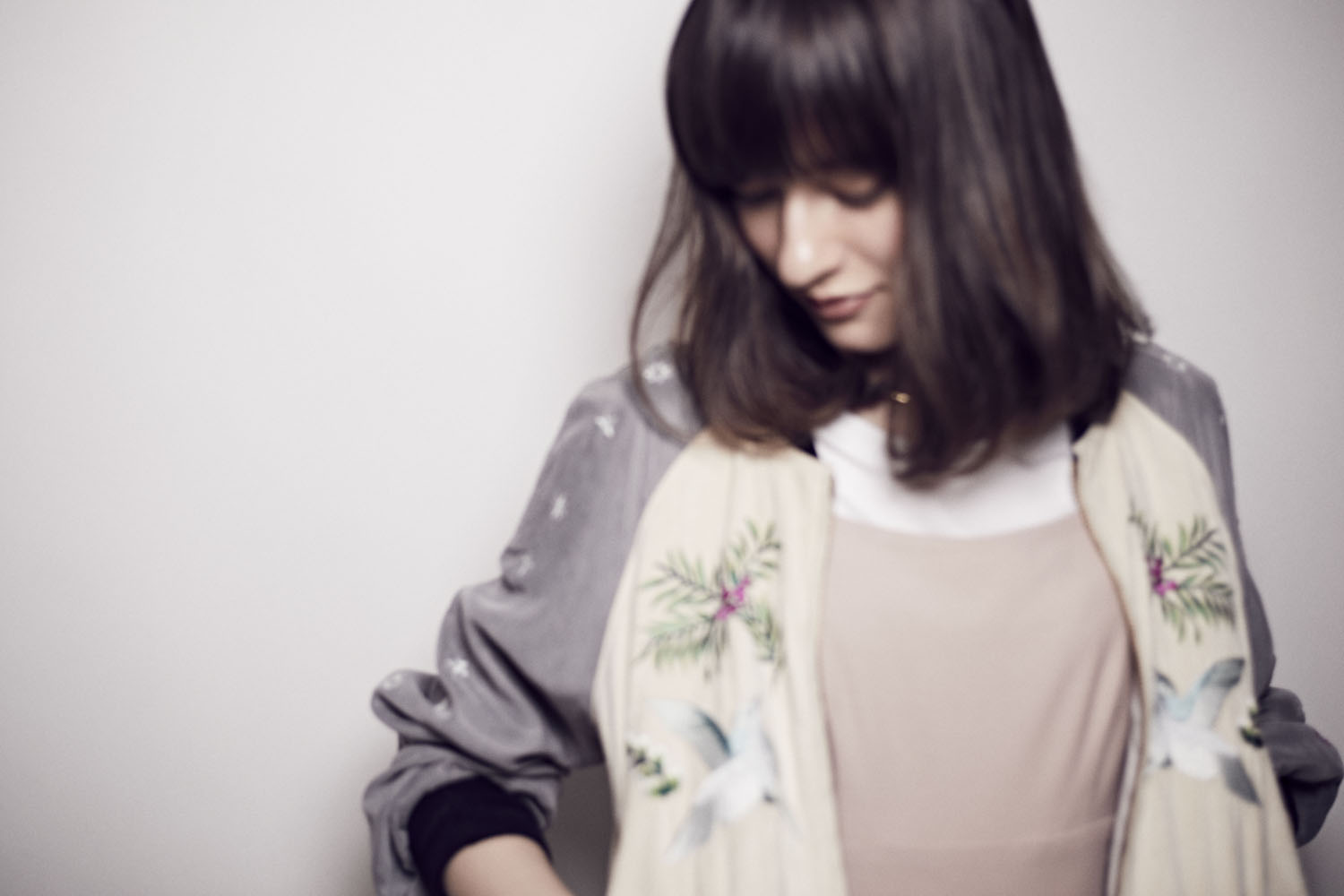 厚めラウンドした前髪が魅力的なセミロング。