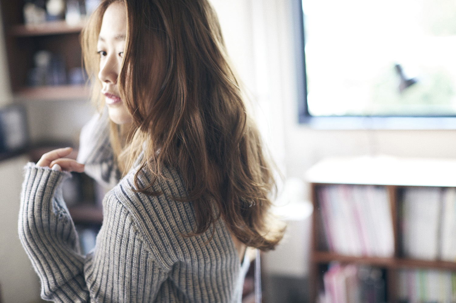 女性らしく優しげな印象を与える緩やかなロングウェーブ。